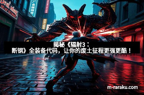 总结一下,掌握《辐射3:断钢》的全装备代码,不论你是想轻松过关,还是追求极致体验,都能助你一臂之力。下一部分我将为你揭秘更详细的装备秘籍,告诉你如何获取这些代码,甚至教你自己制作专属秘籍,开启属于你的废土王者之路。